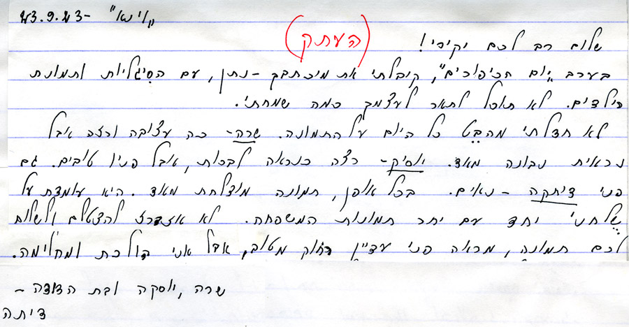 תיעוד התכתבויות - מכתבים שנכתבו ע"י נתן וחוה במהלך השנים בתקופות שונות בחייהם